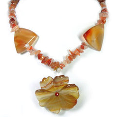 Carnelian Flower Pendant Necklace